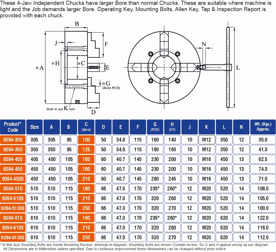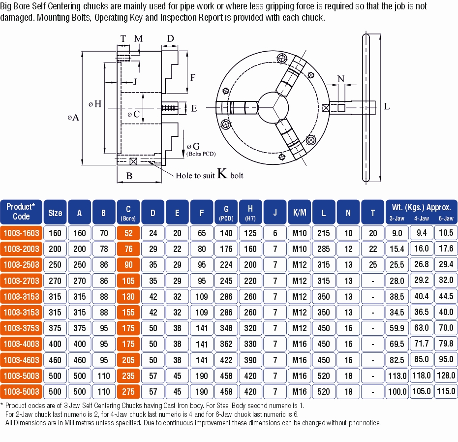 BIG BORE SELF CENTRING CHUCKS