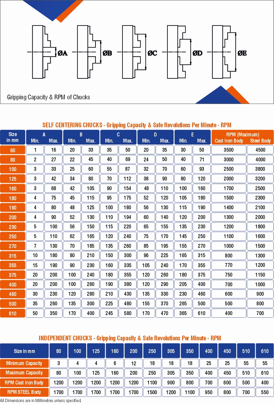GRIPPING CAPACITY / RPM OF CHUCKS
